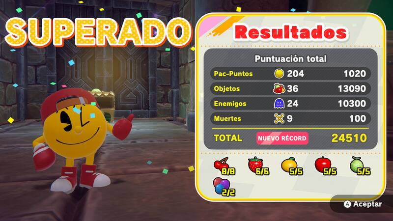 Pero ese es un estilo de juego totalmente válido y quienes disfrutaron con el juego en el pasado lo van a hacer más ahora, considerando la nueva música, controles, gráficos y mejoras en calidad de vida, como por ejemplo ahora puedes saber cuántas frutas de cada una te faltan en cada mundo, además de poder usar trajes para darle un look fresco a tu Pac-Man.