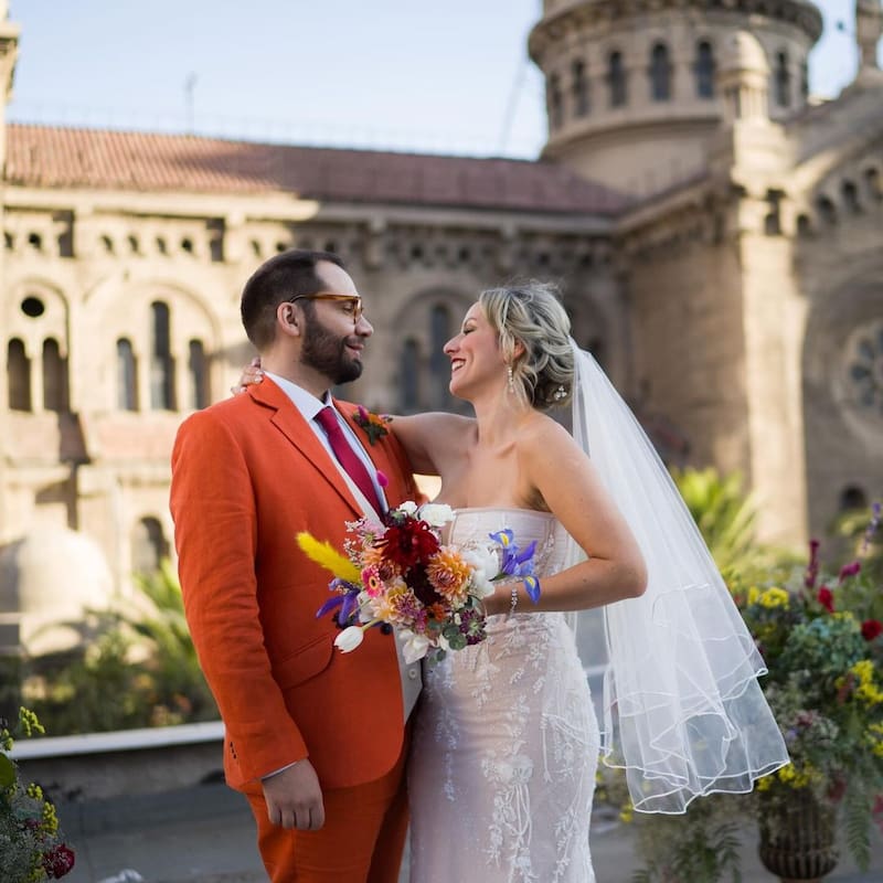 Después de meses de preparativos para que se materializara la ceremonia de sus sueños, los enamorados se casaron el 6 de abril en los Juegos Diana, el mítico centro de entretención de la capital. Ella lució un vestido strapless corte sirena, mientras que él usó un traje color naranjo.