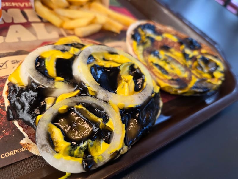 Por lo mismo, el sabor es bastante ácido y fuerte, suavizado solo por el inconfundible cheddar y el sabor de carne a la parrilla. Es una hamburguesa simple, que llama la atención por su color negro y con una apuesta hecha más para los amantes de los sabores fuertes.