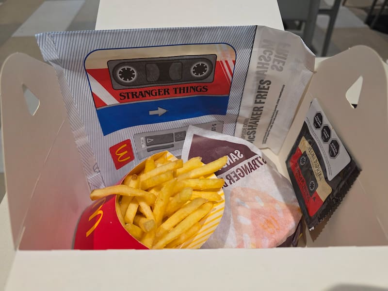 Si bien en lo personal debo decir que el sabor de la Derry King es más de mi gusto, en su conjunto el Combo Stranger Burger de McDonald’s es una experiencia insuperable. Desde la presentación de los productos, la idea misma de un sándwich que luce raro pero sabe tal como esperas —un poco como una serie de Netflix, si lo piensas bien— y hasta el detalle innecesario de las papas con sabor, se nota que hubo un esfuerzo de pensar un producto que para los fans es de alto valor y para los que no lo somos, es más que una hamburguesa, también es una anécdota.