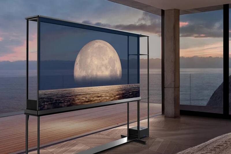 La gracia de este televisor es que cuenta con una pantalla OLED de 77 pulgadas que es completamente inalámbrica y transparente, siendo diseñada para hogares con espacios muy amplios y grandes ventanales.