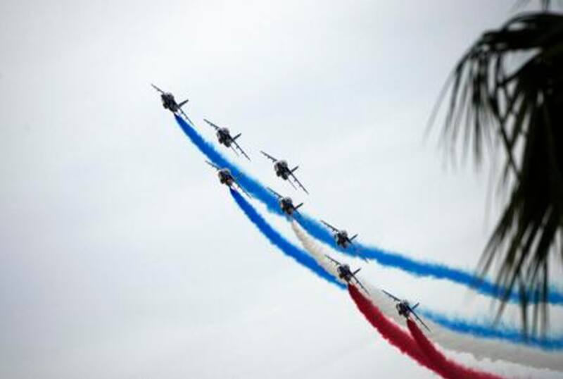 En ese evento se concretó la aparición de ocho jets de combate que emitieron humo con los colores de la bandera francesa.