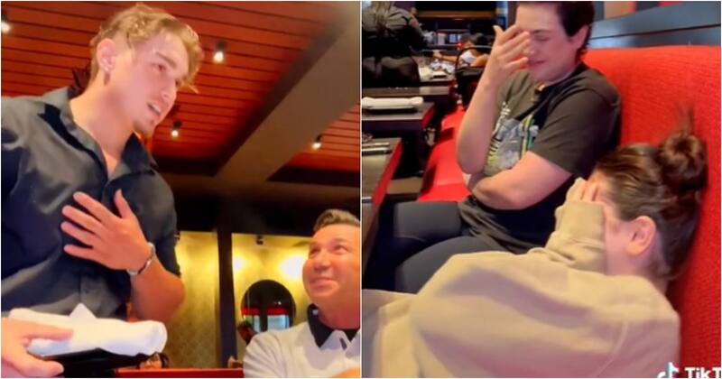 “Mi hermana pensó que este mesero era lindo así que mi papá hizo esto”, señaló en el video el joven.