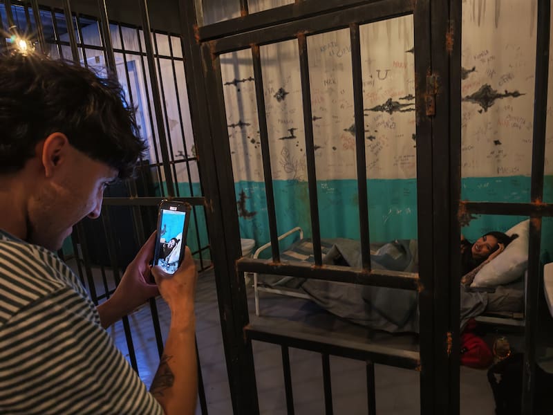 Pero bajando al -1, donde están los baños, se encuentra quizás una de las mayores atracciones del local: una recreación de una celda de prisión, con una cama, un baño, sus rayados y todo para simplemente sacarse fotos, videos y jugar un rato.