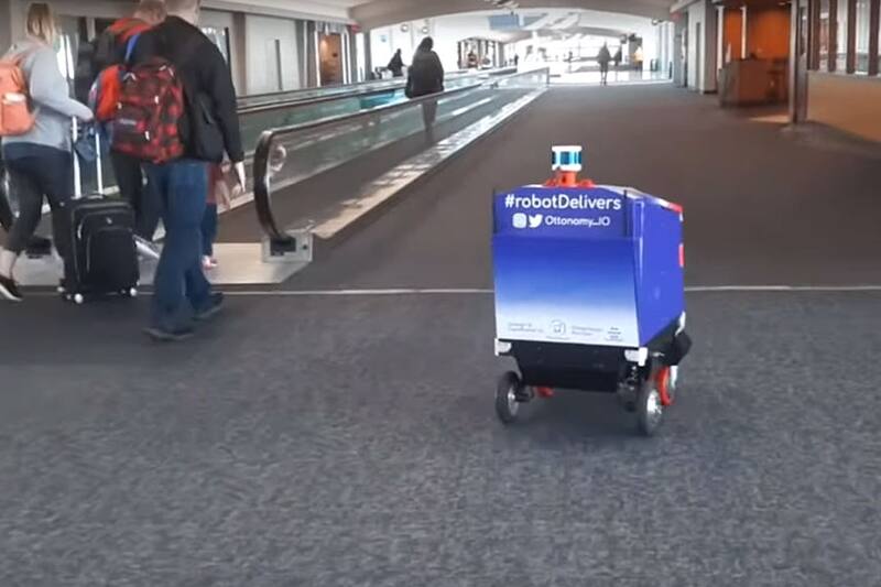 Como Ottobot ha sido bautizado un nuevo robot autónomo que cumple funciones de delivery al interior de aeropuertos.