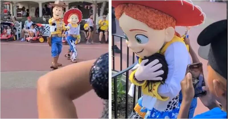 Es dentro de este contexto que se viralizó un video de una familia donde una de sus hijas, Hayyn, se abraza tiernamente con Jessie de “Toy Story” en Disney World.