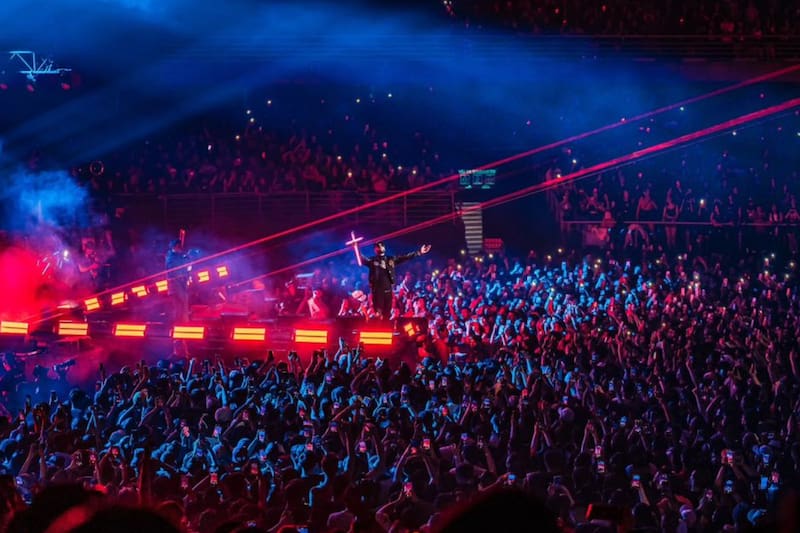 El jueves 14 de noviembre marcó su tercer concierto en suelo nacional, en el marco de su gira “RHLM 2 ″, tras presentarse el 6 y el 12. Para sorpresa de nadie, la fiebre por el puertorriqueño continuaba. Horas antes del espectáculo, largas filas, merch pirata y prendas alusivas al artista adornaban la tarde, mostrando una devoción como pocas en Latinoamérica.