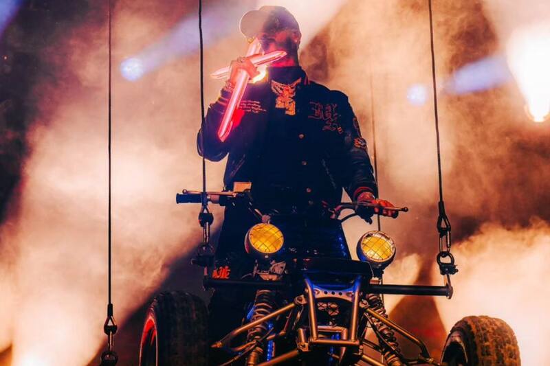 Desde las alturas, en una cuatrimoto, hizo su aparición Anuel, vestido de colores oscuros, con un micrófono en forma de cruz de brillo morado. “Na’ nuevo” y “Medusa” dieron inicio a la jornada, con el músico llevándose al público al bolsillo desde el primer instante.