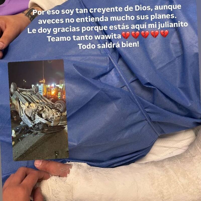 Además, expresó su gratitud diciendo: “Le doy gracias porque estás aquí, mi Julianito. Te amo tanto. Todo saldrá bien”, y compartió impactantes imágenes del accidente.