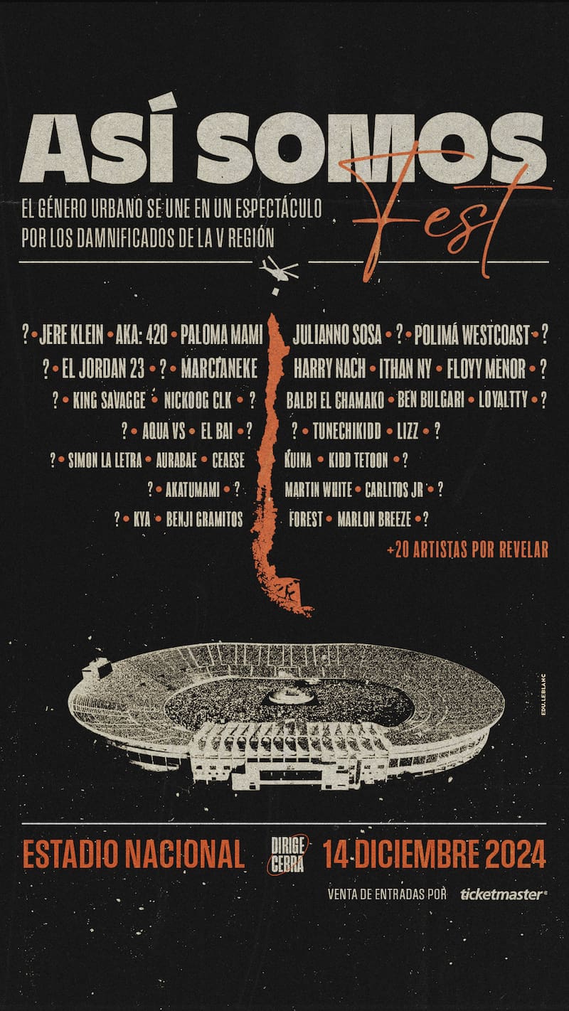 Esta jornada musical se planea realizar el 14 de diciembre, siendo la primera vez que un encuentro de música urbana nacional ocupará el Estadio Nacional. La cita tiene como objetivo ayudar a los damnificados de los incendios en la Región de Valparaíso.