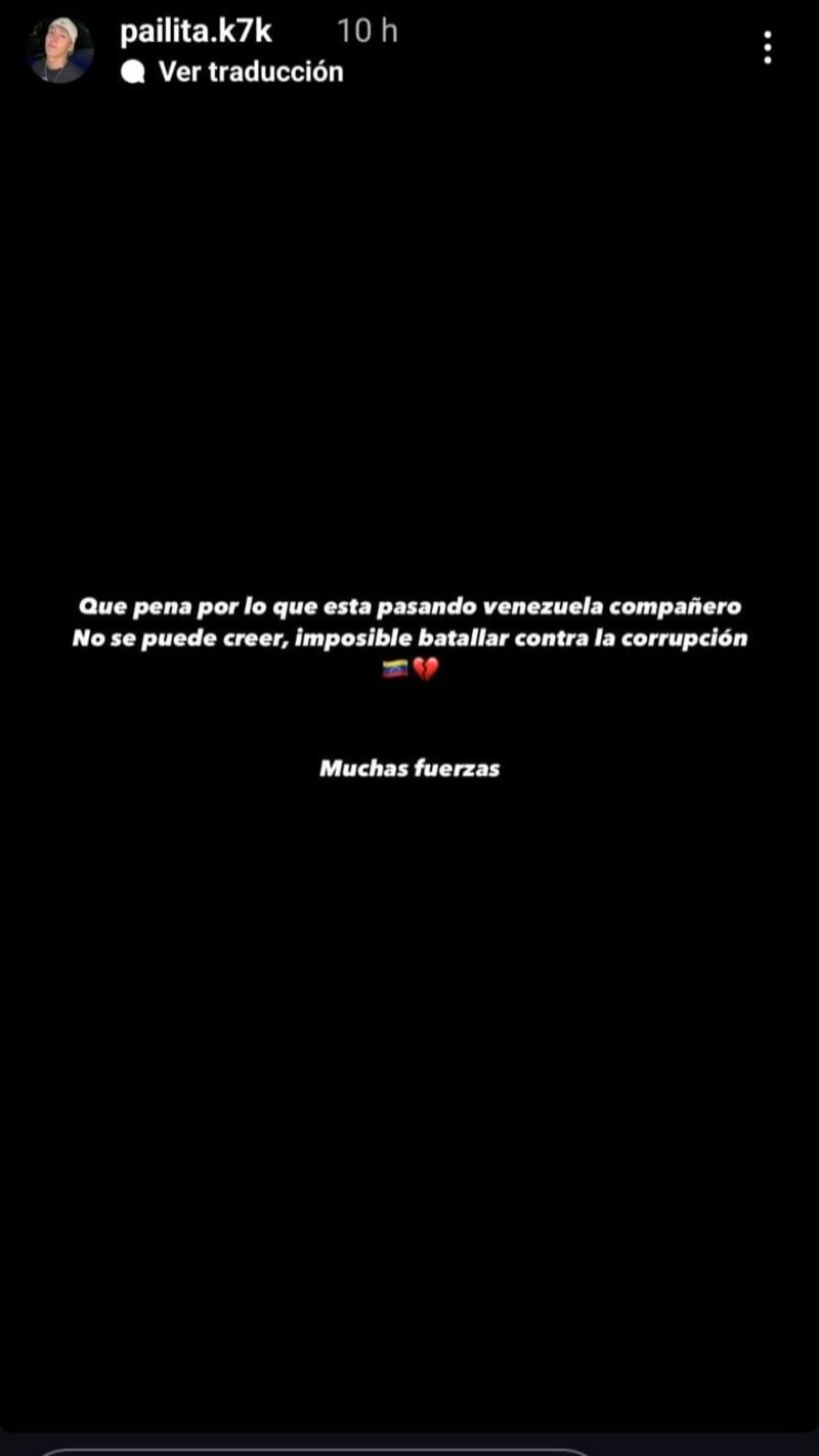 “Qué pena por lo que está pasando en Venezuela, compañero. No se puede creer, imposible batallar contra la corrupción”, escribió el magallánico.