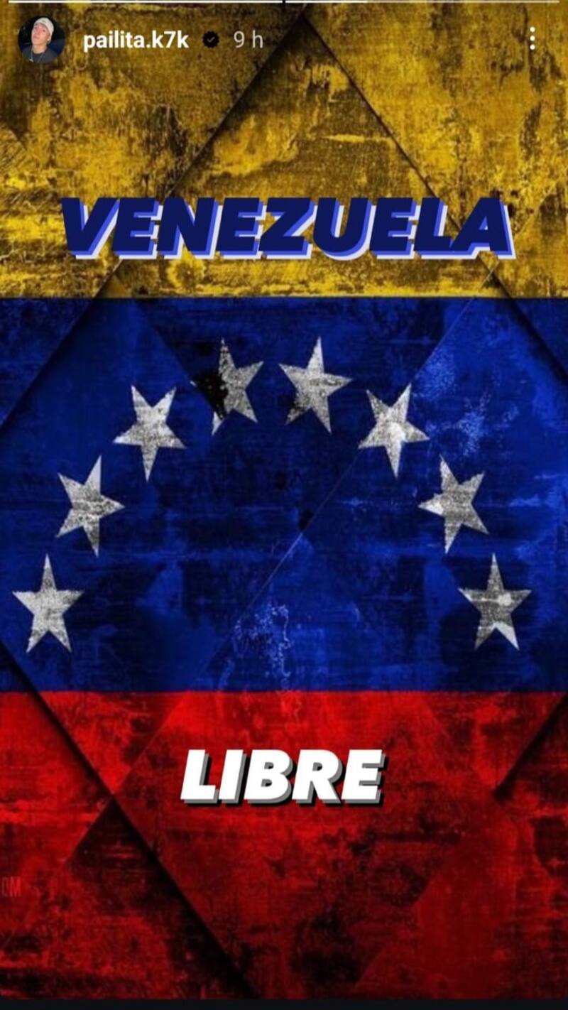 Posteriormente, compartió una bandera de dicho país con el mensaje: “Venezuela libre”.